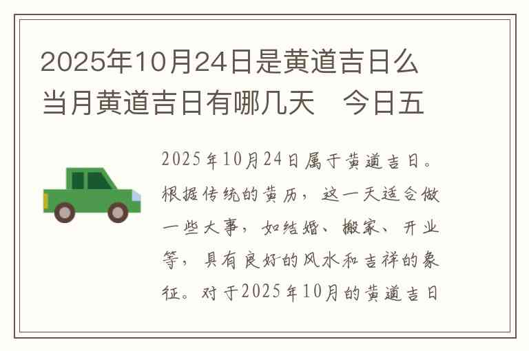 2025年10月24日属于黄道吉日。根据传统的黄历,这一天适合做一些大事,如结婚、搬家、开业等,具有良好的风水和吉祥的象征。