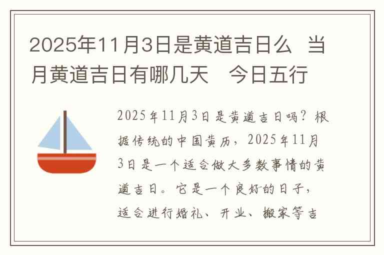 根据传统的中国黄历,2025年11月3日是一个适合做大多数事情的黄道吉日。它是一个良好的日子,适合进行婚礼、开业、搬家等吉利活动。黄道吉日通常是通过天干地支、五行八字等多方面的因素来推算的,而2025年11月3日恰逢黄道吉日,因此在这个日子里进行重要活动是比较合适的。