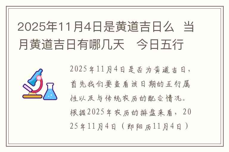 2025年11月4日是否为黄道吉日,首先我们要查看该日期的五行属性以及与传统农历的配合情况。根据2025年农历的排盘来看,2025年11月4日(即阳历11月4日)是农历十月二十日,属木日。由于黄道吉日的选择通常与吉时、五行、日柱等因素有关,因此它是否适合办大事、结婚或开业,还需要结合个人的八字以及具体的吉日安排来定。