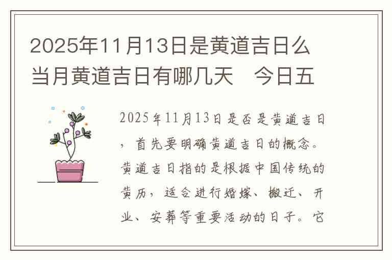 2025年11月13日是否是黄道吉日,首先要明确黄道吉日的概念。黄道吉日指的是根据中国传统的黄历,适合进行婚嫁、搬迁、开业、安葬等重要活动的日子。它通常依据天干地支、五行相生相克、星宿等因素综合推算得出。