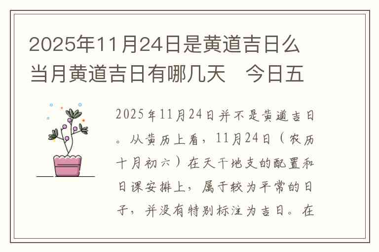 2025年11月24日并不是黄道吉日。从黄历上看,11月24日(农历十月初六)在天干地支的配置和日课安排上,属于较为平常的日子,并没有特别标注为吉日。