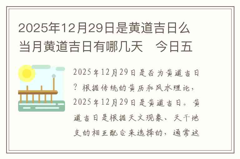 2025年12月29日是否为黄道吉日?