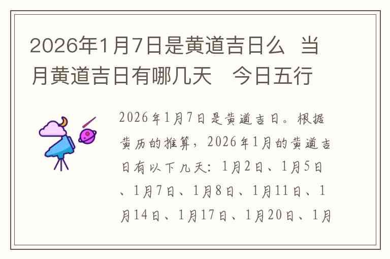2026年1月7日是黄道吉日。