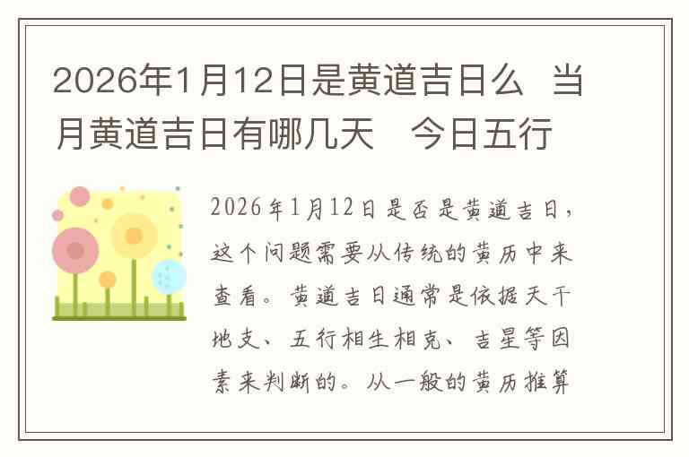2026年1月12日是否是黄道吉日,这个问题需要从传统的黄历中来查看。黄道吉日通常是依据天干地支、五行相生相克、吉星等因素来判断的。从一般的黄历推算来看,2026年1月12日是黄道吉日,适合举办婚礼、搬家、开业等重大活动。