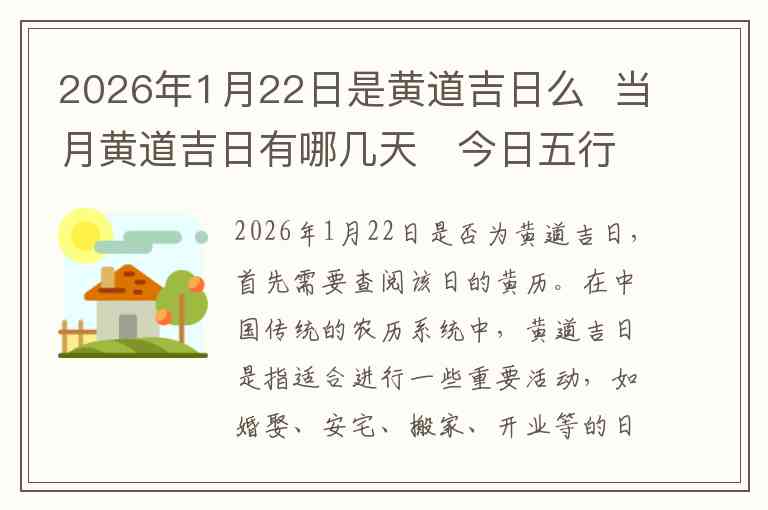 对于2026年1月22日,经过黄历推算,这一天确实是黄道吉日。若要进一步了解整个1月的黄道吉日,我们可以列出几个特别适宜的日子,供参考。