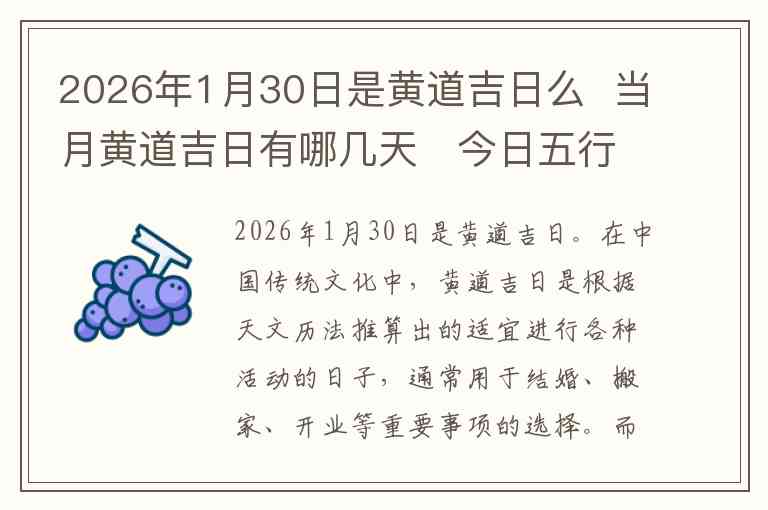 2026年1月30日是黄道吉日。