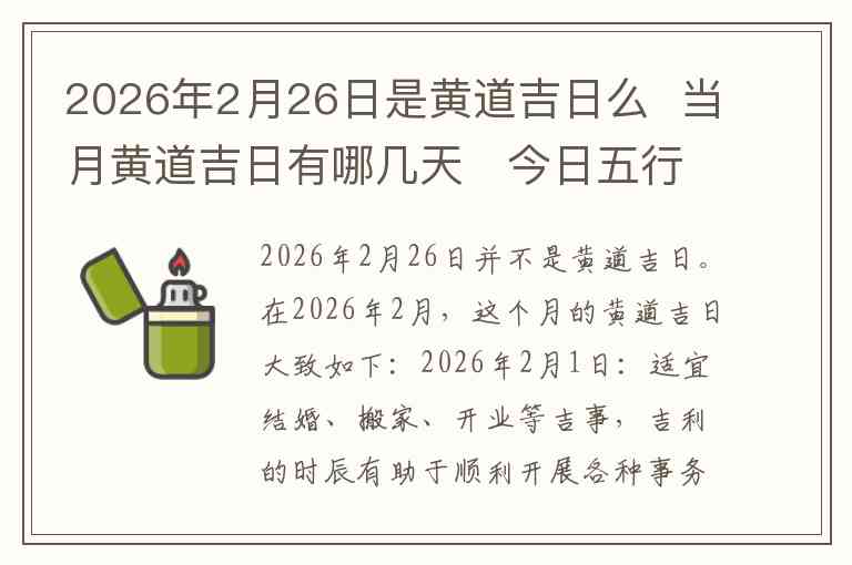 2026年2月26日并不是黄道吉日。在2026年2月,这个月的黄道吉日大致如下: