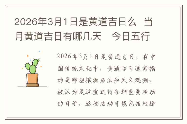 2026年3月1日是黄道吉日。