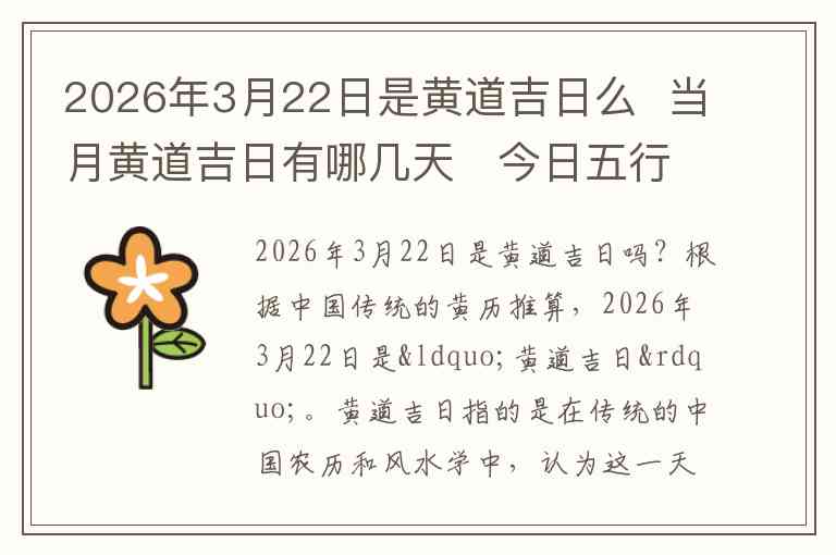 2026年3月22日是黄道吉日吗?