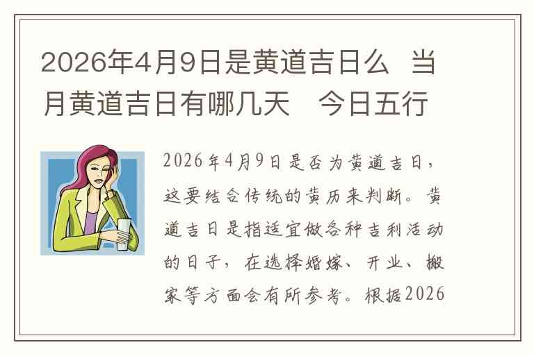 总之,2026年4月9日不仅是黄道吉日,而且五行穿衣的建议是选择木相关的颜色,以利提升个人运势和精神状态。如果有计划在这一天进行重要的事务,适宜在服饰上也做一些与五行相配的调整。