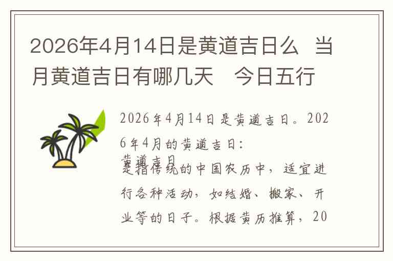 2026年4月14日是黄道吉日。