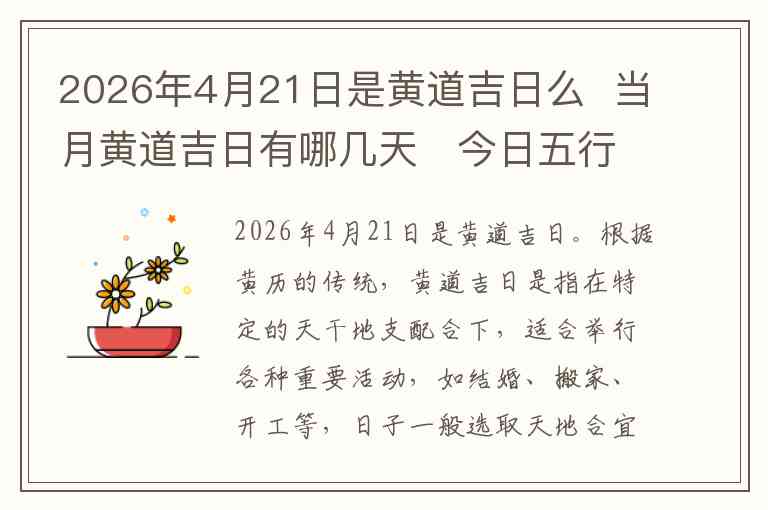2026年4月21日是黄道吉日。