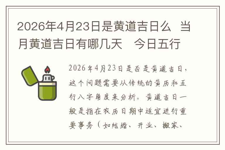 2026年4月23日是否是黄道吉日,这个问题需要从传统的黄历和五行八字角度来分析。黄道吉日一般是指在农历日期中适宜进行重要事务(如结婚、开业、搬家、祈福等)的日子,通常会选择那些天干地支相合、阴阳平衡、五行适宜的日子。具体到2026年4月23日,这一天是农历三月二十,天干地支为丙辰日,从传统的黄历来看,丙辰日并不属于极为吉利的日子,但仍是一个适宜进行一些日常事务的日子。