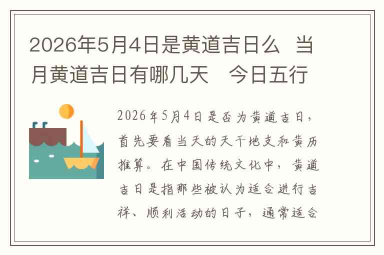 根据2026年5月的黄历推算,5月4日并不是黄道吉日,而是黄道日中的平常日子,适合一些常规活动,但并不特别适合重要的事务。