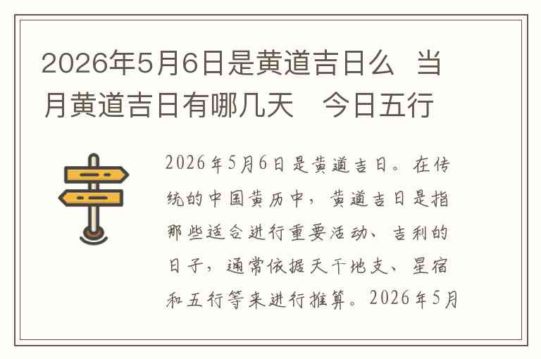 在传统的中国黄历中,黄道吉日是指那些适合进行重要活动、吉利的日子,通常依据天干地支、星宿和五行等来进行推算。2026年5月6日的黄历上标注为“黄道吉日”,所以这是个宜做喜庆、婚嫁、安葬、动土等吉利事情的好日子。
