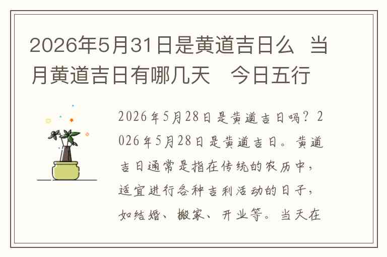 2026年5月31日不是黄道吉日,今天不适宜进行一些重大决策或活动,建议保持低调,避免做出重要改变。