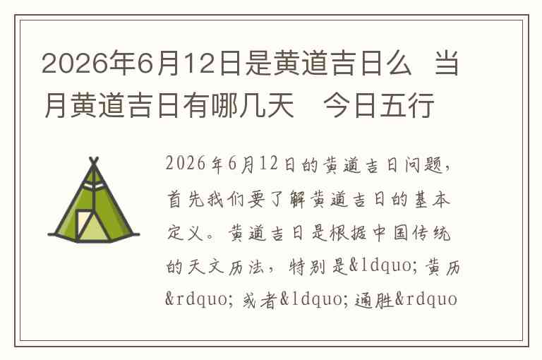 2026年6月12日的黄道吉日问题,首先我们要了解黄道吉日的基本定义。黄道吉日是根据中国传统的天文历法,特别是“黄历”或者“通胜”中的一些方法来推算出来的。它一般是选择那些适合进行重要活动如婚礼、搬家、开业等的日子。通常这一天的天象和五行都被认为是有利的。