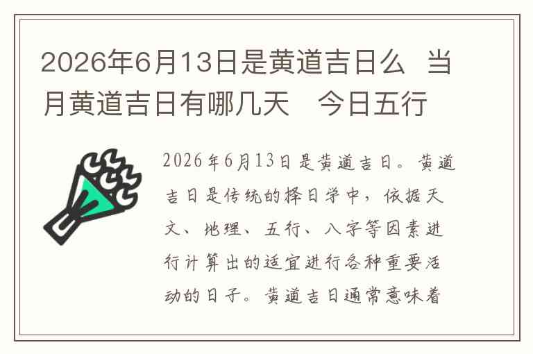 2026年6月13日是黄道吉日。