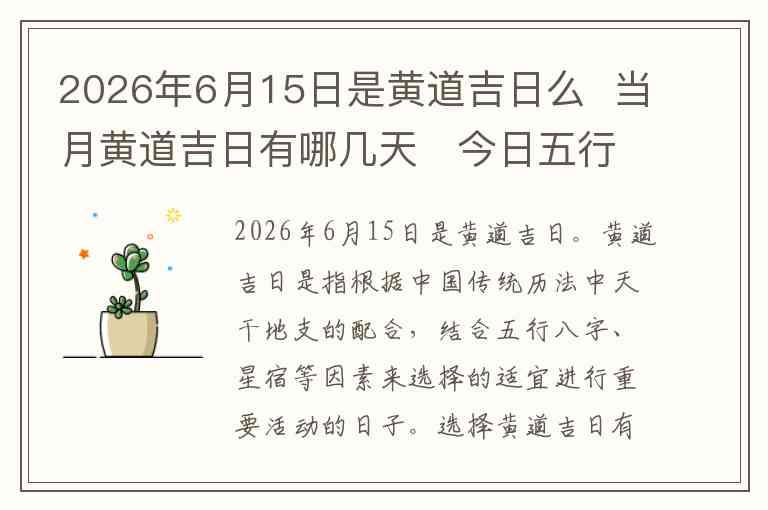 2026年6月15日是黄道吉日。