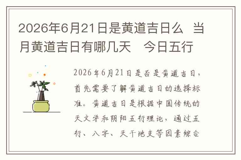 这就是关于2026年6月21日黄道吉日的分析及五行穿衣的简要指南,希望能为你带来一些有价值的信息。