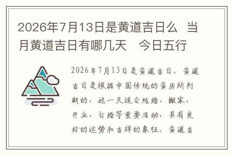 2026年7月13日是黄道吉日。