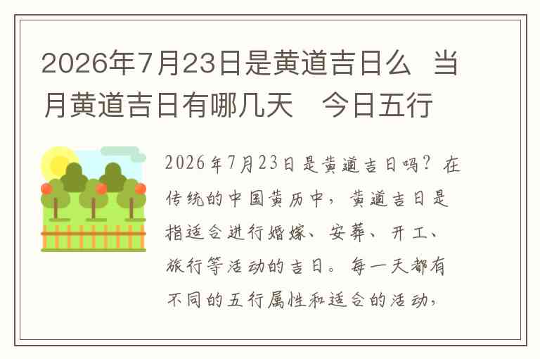 对于2026年7月23日,根据当年的黄历查询,这一天被列为黄道吉日。适合进行一些重要的活动,如开业、结婚、安床等。而对于其他的日子,也有不同的黄道吉日,因此需要具体了解整个月的运势。