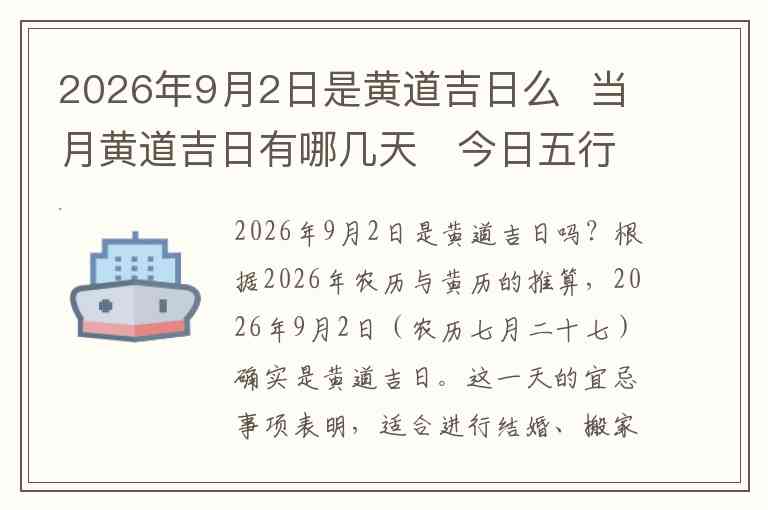 2026年9月2日是黄道吉日吗?