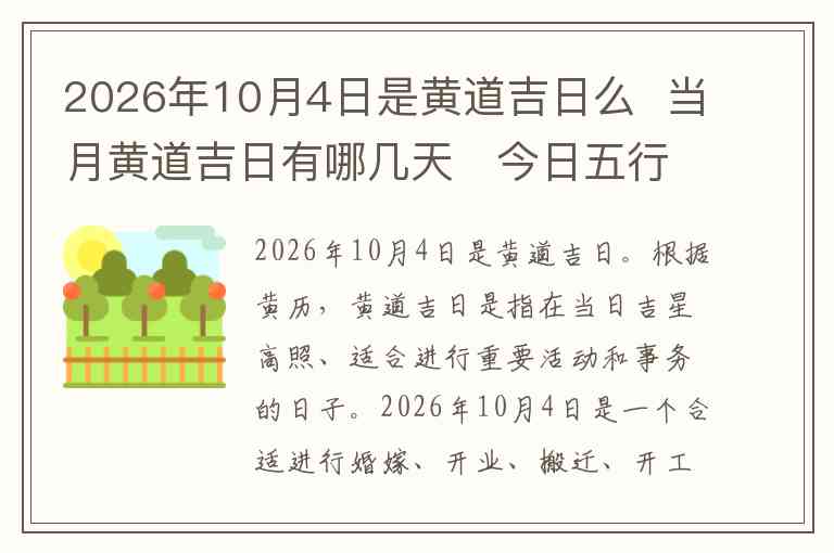 2026年10月4日是黄道吉日。
