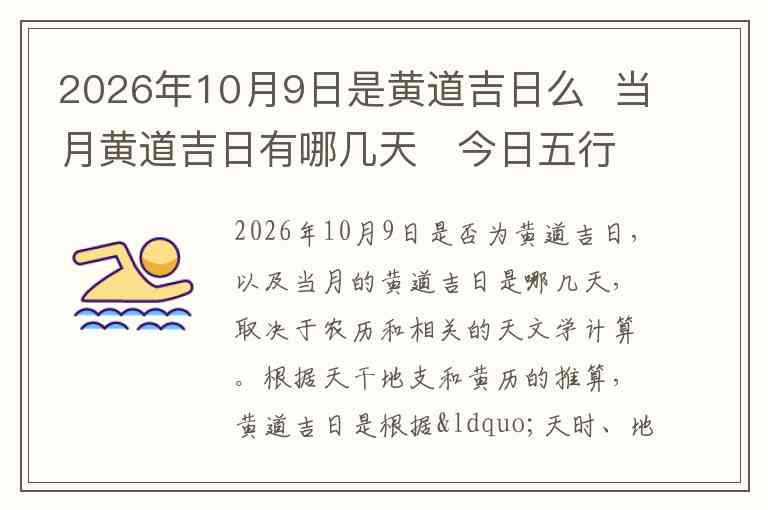 2026年10月9日是否为黄道吉日,以及当月的黄道吉日是哪几天,取决于农历和相关的天文学计算。根据天干地支和黄历的推算,黄道吉日是根据“天时、地利、人和”来选择的,通常是以日子的五行、星宿等因素来确定。下面我会为您提供一些相关的分析。