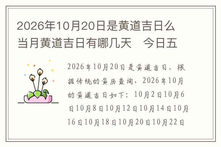 2026年10月20日是黄道吉日。