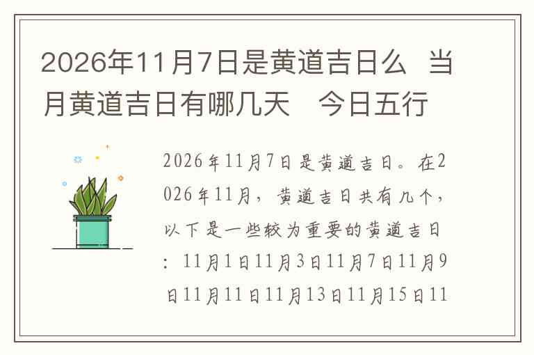 2026年11月7日是黄道吉日。