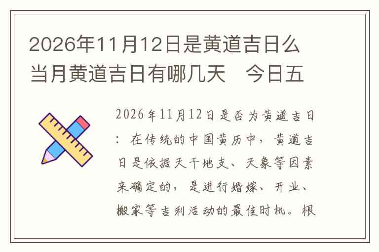 在传统的中国黄历中,黄道吉日是依据天干地支、天象等因素来确定的,是进行婚嫁、开业、搬家等吉利活动的最佳时机。根据2026年11月的黄历,11月12日并非黄道吉日。事实上,这一天是“赤口”日,是不适合进行重大决策或重要活动的日子。