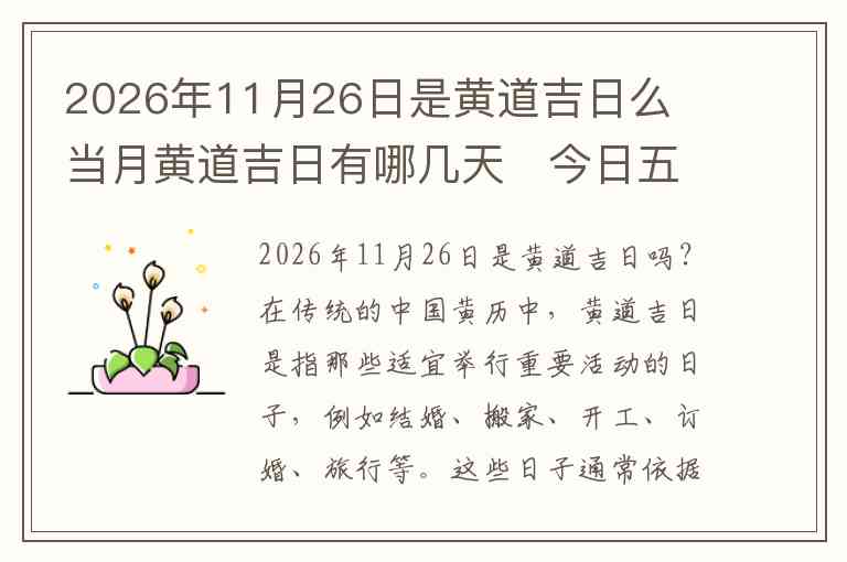 从2026年11月的黄历来看,11月26日被认为是“吉日”,但是否适合某个特定活动,还需要结合具体的时辰和个人的生辰八字来判断。单纯从黄历上的“吉日”来看,26日是适宜进行婚礼、开工等吉利活动的好日子。