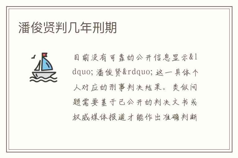 目前没有可靠的公开信息显示“潘俊贤”这一具体个人对应的刑事判决结果。类似问题需要基于已公开的判决文书或权威媒体报道才能作出准确判断。