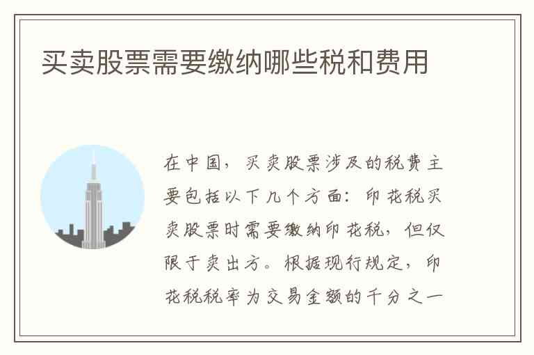 在中国,买卖股票涉及的税费主要包括以下几个方面: