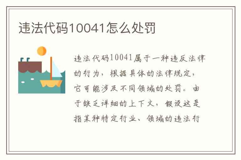 违法代码10041属于一种违反法律的行为,根据具体的法律规定,它可能涉及不同领域的处罚。由于缺乏详细的上下文,假设这是指某种特定行业、领域的违法行为。