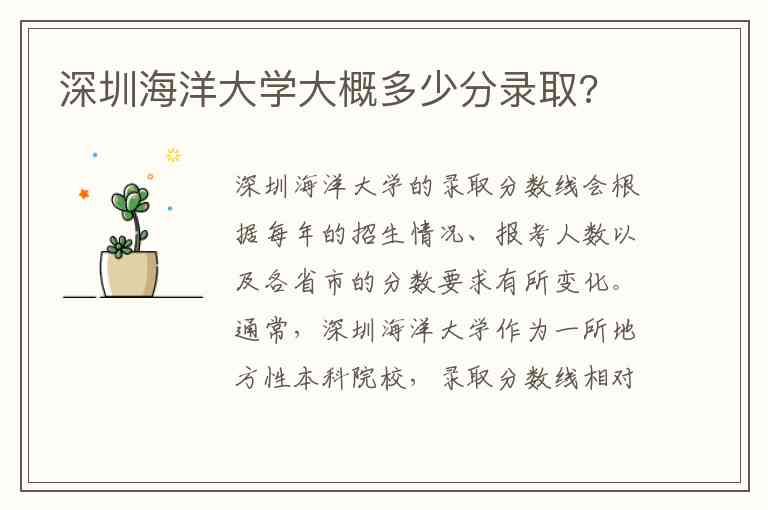 为了获取最准确的信息,建议关注深圳海洋大学官网或者当地招生考试院发布的官方信息,查看各个专业和年份的具体分数线。