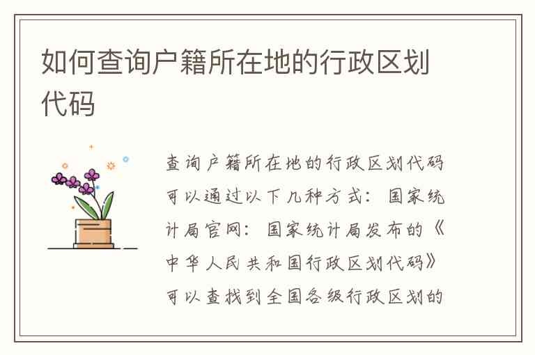 查询户籍所在地的行政区划代码可以通过以下几种方式:
