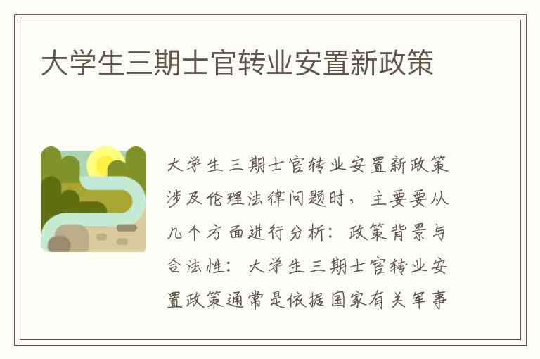 大学生三期士官转业安置新政策涉及伦理法律问题时,主要要从几个方面进行分析: