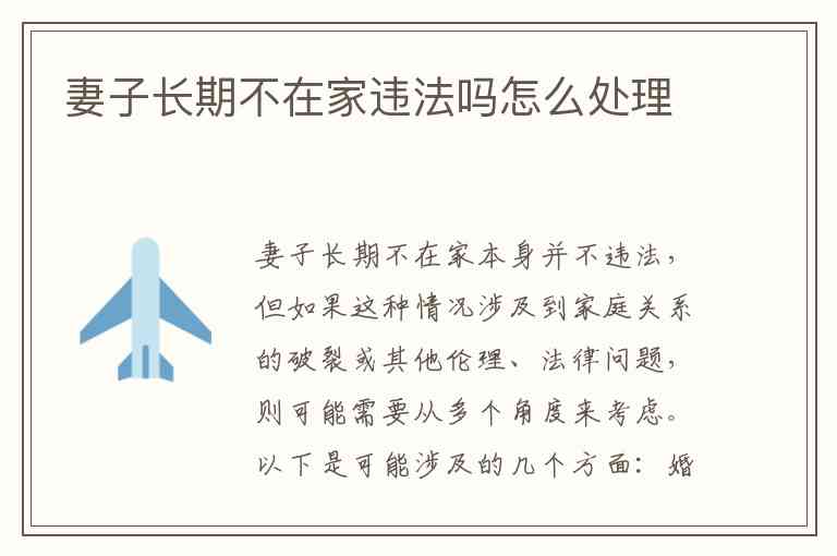 妻子长期不在家本身并不违法,但如果这种情况涉及到家庭关系的破裂或其他伦理、法律问题,则可能需要从多个角度来考虑。以下是可能涉及的几个方面: