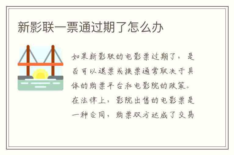 如果新影联的电影票过期了,是否可以退票或换票通常取决于具体的购票平台和电影院的政策。在法律上,影院出售的电影票是一种合同,购票双方达成了交易协议。过期票通常意味着合同的一方(即观众)未能在约定时间内履行观看电影的义务。