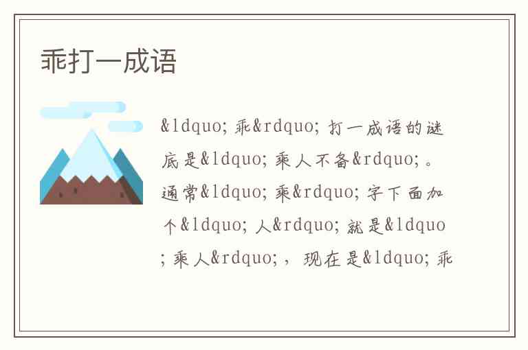 通常“乘”字下面加个“人”就是“乘人”,现在是“乖”字,说明是“乘”字少了“人”,也就是趁着“人”没有具备(不备)的状态,所以对应成语“乘人不备” 。