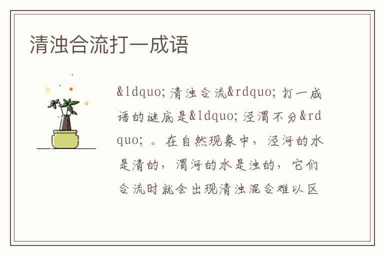 “清浊合流”打一成语的谜底是“泾渭不分” 。