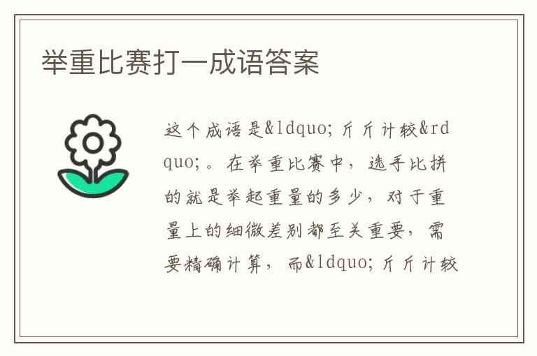 在举重比赛中,选手比拼的就是举起重量的多少,对于重量上的细微差别都至关重要,需要精确计算,而“斤斤计较”中“斤斤”对应重量单位,形象地契合了举重比赛注重对重量仔细考量、比较的特点 。