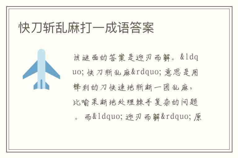 “快刀斩乱麻”意思是用锋利的刀快速地斩断一团乱麻,比喻果断地处理棘手复杂的问题 。