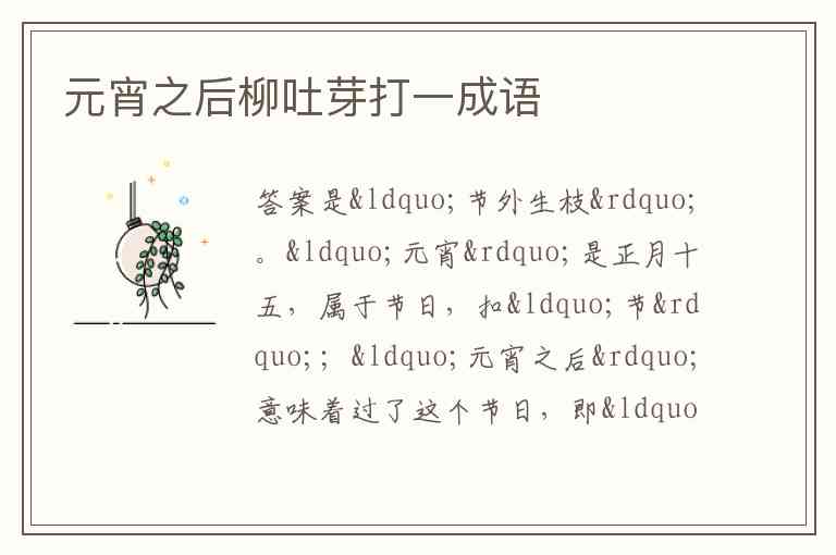 “元宵”是正月十五,属于节日,扣“节”;“元宵之后”意味着过了这个节日,即“节外” ;“柳吐芽”是柳树生出了新的枝丫,对应“生枝”。