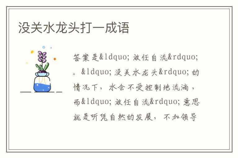 没关水龙头打一成语