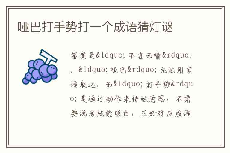 哑巴打手势打一个成语猜灯谜