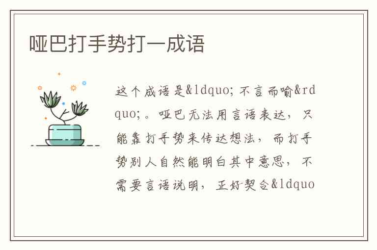 哑巴无法用言语表达,只能靠打手势来传达想法,而打手势别人自然能明白其中意思,不需要言语说明,正好契合“不言而喻”这个成语的意思,即不用说话就能明白,形容道理很明显 。