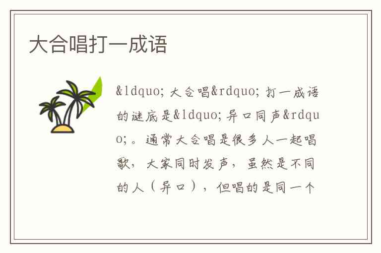 “大合唱”打一成语的谜底是“异口同声”。